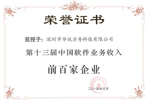 華訊方舟位列2014年中國軟件收入百強第55位